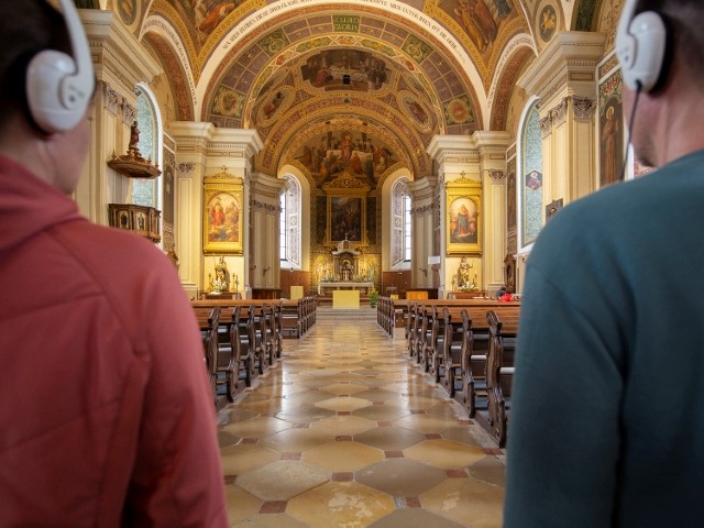 Die Besucher*innen wandern durch unterschiedliche Hör- und Erfahrungsräume. Als Wegmarken fungieren Audiotracks am Smartphone, die man an genau festgelegten Stationen des Weges mittels Kopfhörer anhört. Die Stimmen im Ohr stammen von Kirchenbesucher*innen, Wissenschaftler*innen sowie Expert*innen aus verschiedenen Bereichen, z. B. Almwirtschaft, Bio-Engineering, Alpinismus, Tanz, Philosophie, Sozialpsychologie und spirituelle Praxis. „Das Gehörte verbindet sich mit den inneren Erlebnissen der Hörenden und der Umgebung zu Erfahrungsräumen für die Grundfragen des Daseins und des Verhältnisses zwischen Mensch und Natur“, so Christoph Viscorsum.